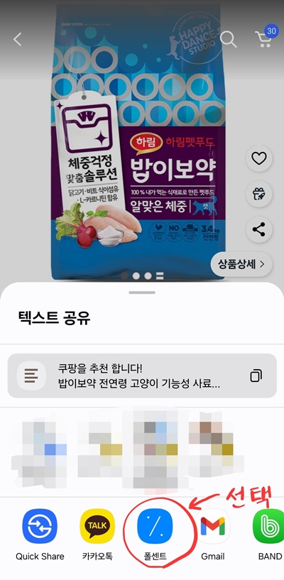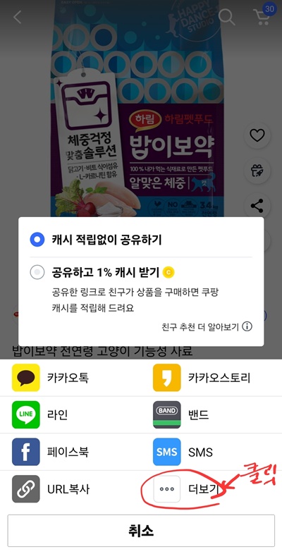 원하는 제품을 선택했으면 오른쪽에 공유하기 버튼을 클릭합니다.