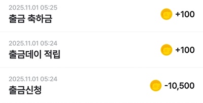 출금 축하금, 출금데이 적립금이 들어왔네요.
