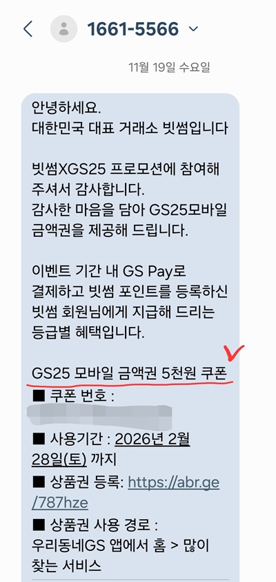 문자로 오니까 잘 확인하시고 우리동네GS에 등록하셔서 사용하시면 됩니다.