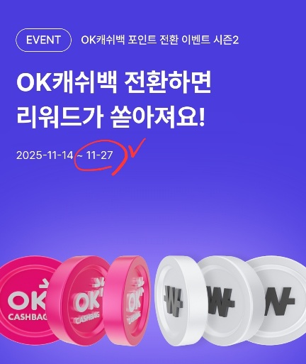 2주간 진행된 OK캐쉬백 모카코인 이벤트 마지막날 입니다.
