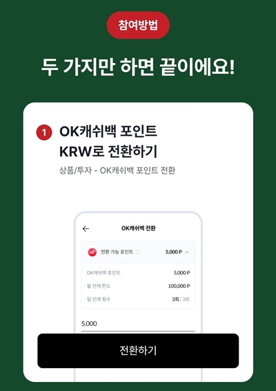 1. OK캐쉬백으로 10만 원(일일 최대한도 금액)을 충전