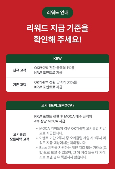 코빗 모카코인 리워드 4% 적립 이벤트(최대 56,000원) 신규 추가 혜택, 모키클럽 신규 5,000 OK캐쉬백