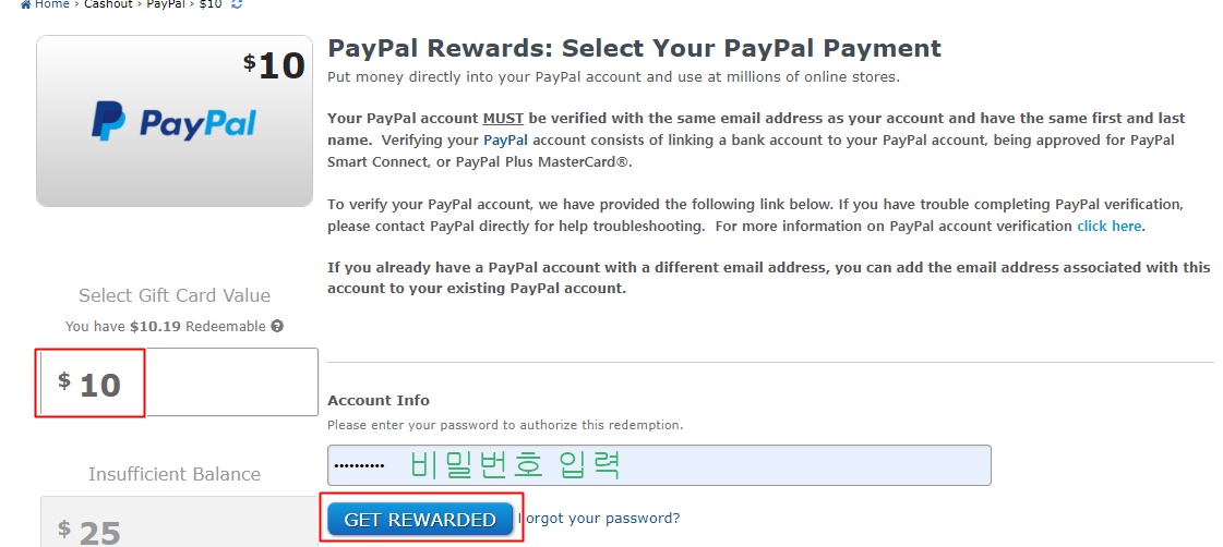 10$ 이상 적립금이 모이면 페이팔 출금이 가능합니다.