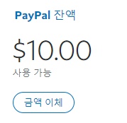 10$를 내 페이팔 계좌로 입금 신청을 했습니다.