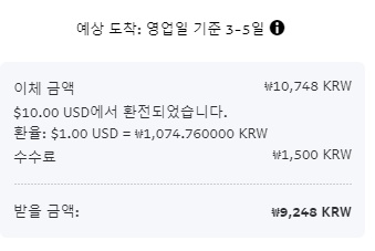 을 떼고 9,248원이 입금될 예정입니다.